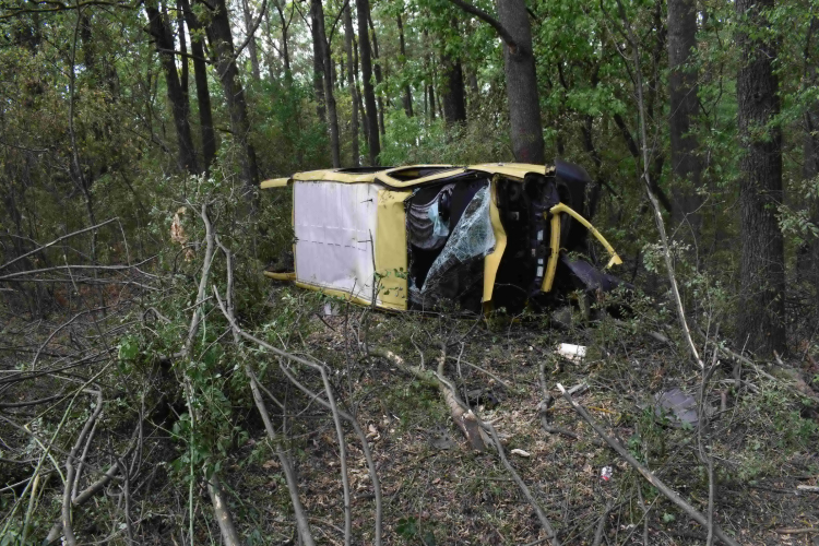 Felborult egy autó a kanyarban, mentőhelikopter is érkezett a helyszínre.