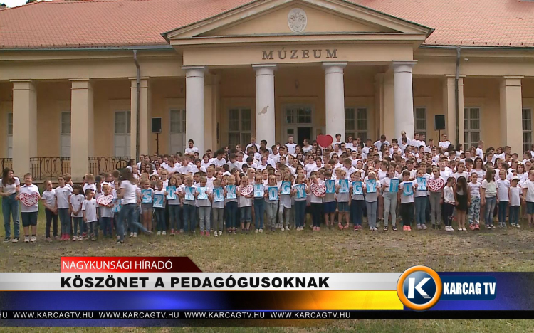 Pedagógusnap alkalmából a Karcagi Általános Iskola és Alapfokú Művészeti Iskola mindhárom tagintézményének minden diákja köszöntötte a város pedagógusait a Múzeumparkban.