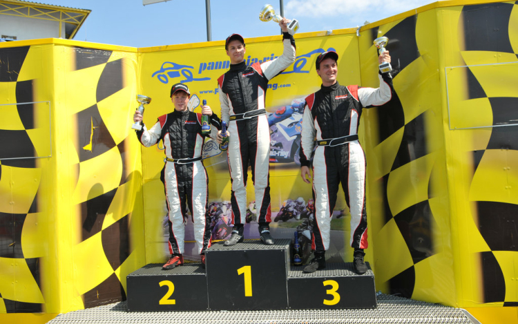 - Igen, sokkal izgalmasabb. A fordított rajtrács miatt a nyolcadik helyről indultam. A rajtom nem sikerült túl jól. Most ugyan jól láttam a lámpát, - nem úgy, mint az első futamon -, de olyan szélesen autóztak a többiek, hogy képtelenség volt megelőzni őket. Az ötödik helyre tudtam csak feljönni az első körben, innen Pistivel (Bernula) harcoltam a versenytáv felében. Sikerült ugyan megelőznöm, de hibáztam az egyik féktávon és Pisti azonnal visszavette a helyét. Ekkor kezdhettem a támadást előröl. Újabb körök vesztek el a számomra, mire átrágtam magam rajta. Ekkor már több mint 100 méter lemaradásom volt a versenyt vezető hármastól, amit kopott gumik miatt a határon autózva sikerült csak ledolgoznom. Mátét utolérve újra kezdődött minden. Ő már eredményesen védekezett, egyszer össze is mentünk. Végül csak azért állhattam a dobogó harmadik fokára, mert Máté két másodperces büntetést kapott a négykerekes pályaelhagyásai miatt. Harcos menet volt.