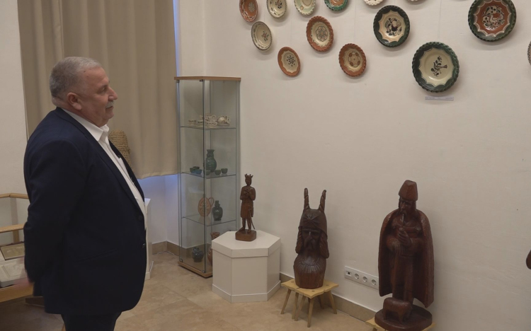 - Mi úgy szoktuk egymás közt mondani, hogy ez az úgynevezett „új szerzeményi kiállítás”. Azok a tárgyak láthatóak itt, amik újonnan érkeztek be az elmúlt 12 évben a múzeumba. Azért éppen 12 év, mert ennyi idővel ezelőtt történt a fenntartóváltás. Korábban a megyei önkormányzathoz tartozott a múzeum. 12 évvel ezelőtt, 2013-ban került át a város fenntartásába, és ez alatt az időszak alatt ennyi tárgyunk gyűlt össze, vagyis került új tárgyként a múzeumba. Ennek nagy része adományozásból, ajándékozásból került ide, illetve egy részét vásároltuk.