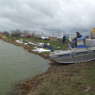 Jól vizsgázott a Nagykunsági Vízgazdálkodási Társulat új, kétéltű csatornatisztító gépe Karcagon a Téglagyári tavon tartott bemutatón.
