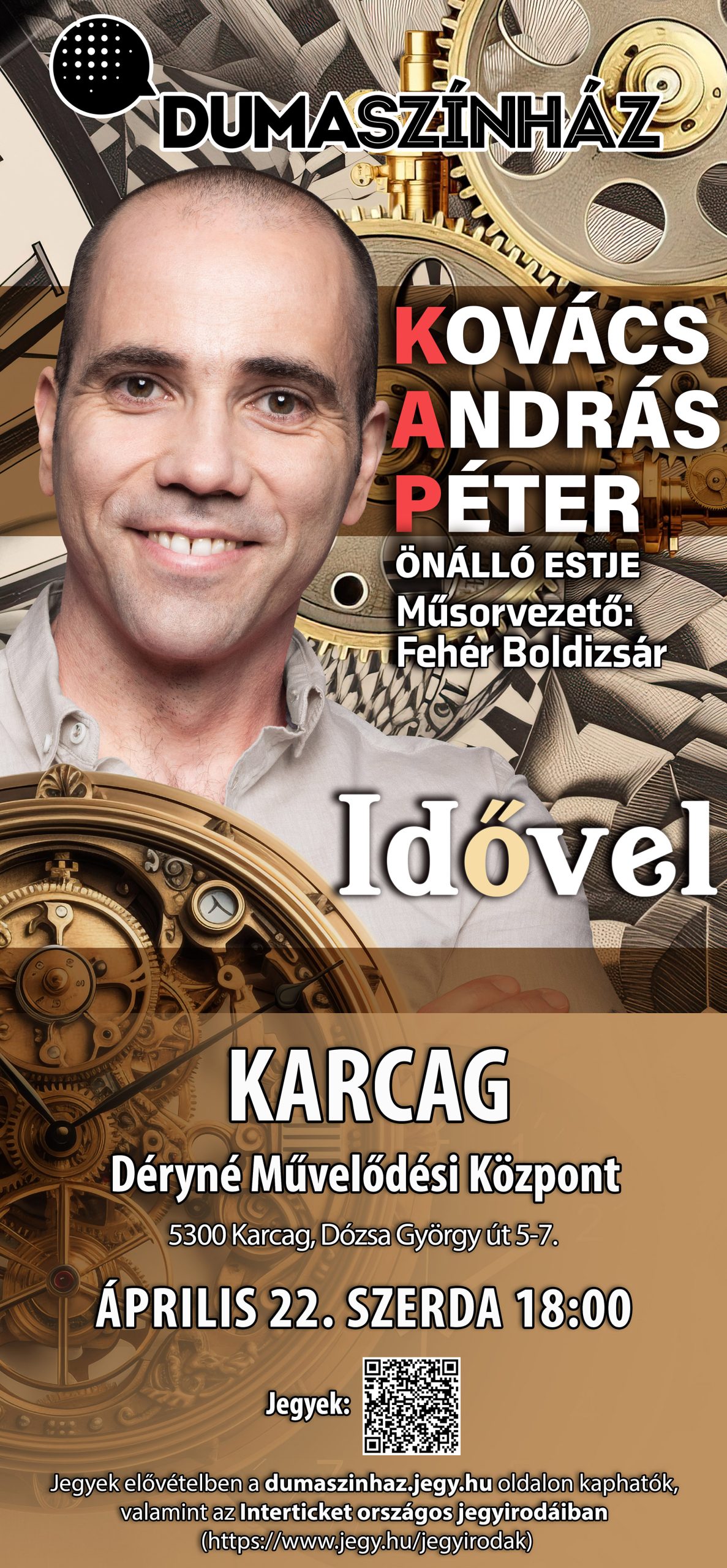 Jegyek elővételben a dumaszinhaz.jegy.hu oldalon kaphatók, valamint az Interticket országos jegyirodáiban (https://www.jegy.hu/jegyirodak)