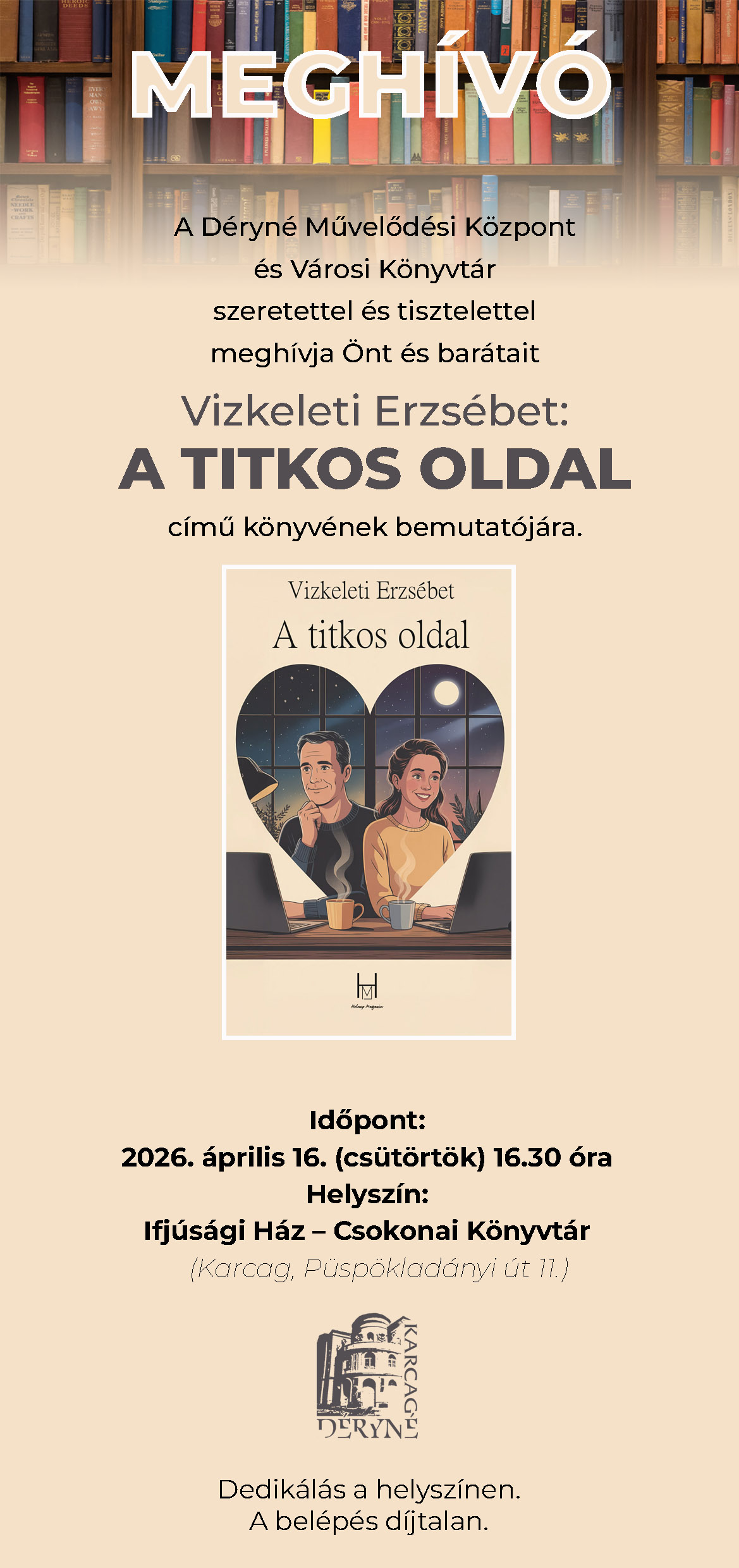 A Déryné Művelődési Központ és Városi Könyvtár szeretettel és tisztelettel meghívja Önt és barátait
